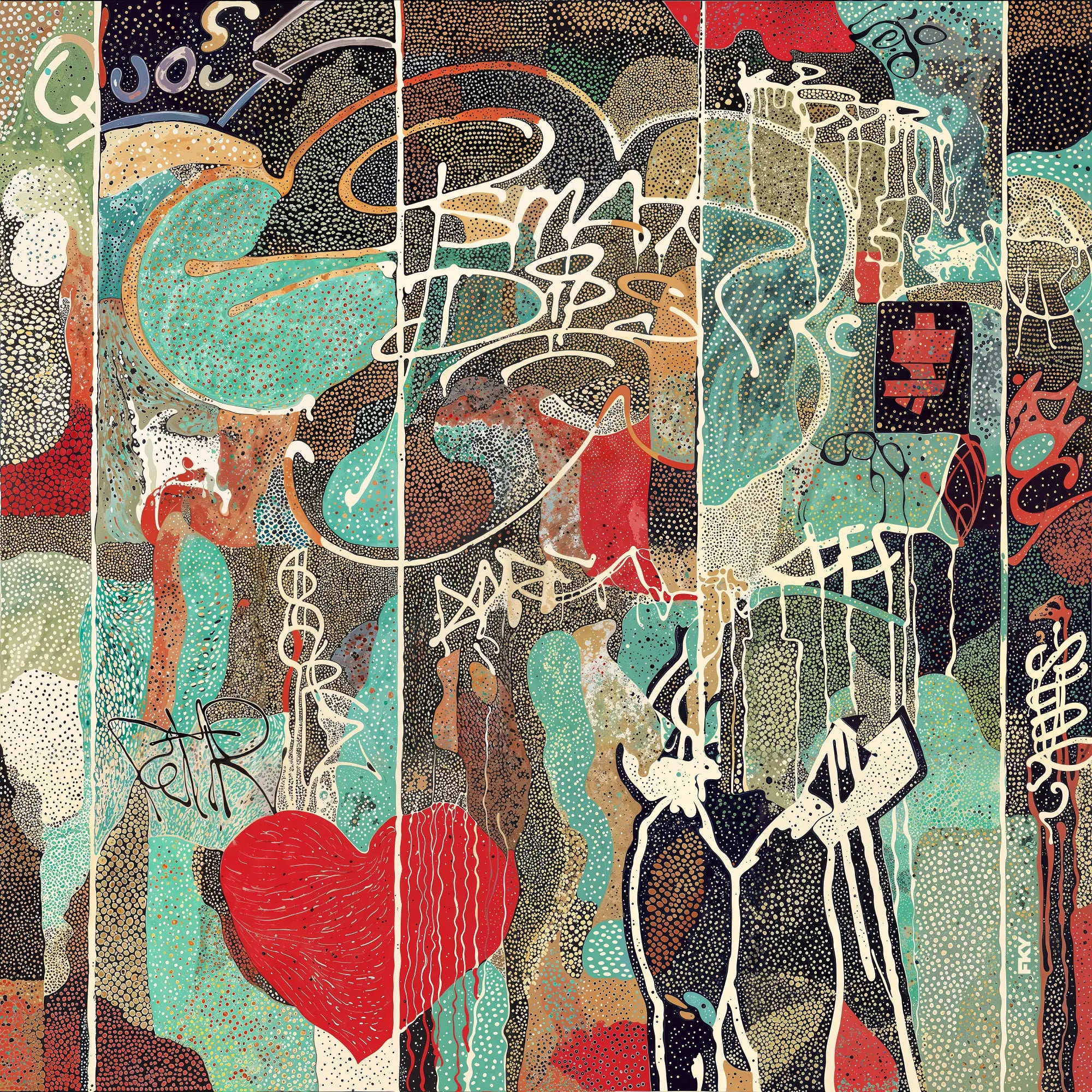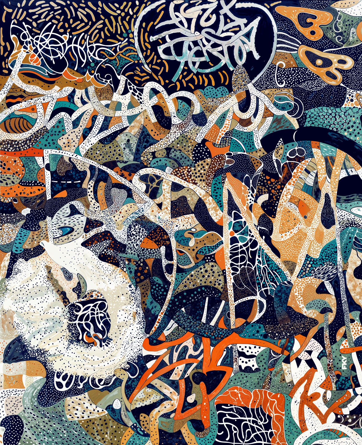 À la croisée du graffiti et de l’abstraction poétique, FKY explore la frontière entre le chaos et l’équilibre, entre l’universel et le personnel. Chaque oeuvre est une carte mentale tissée de formes, une plongée dans l’intime. Ses compositions vibrent de tension, d’humanité, de rythme. Elles touchent l’oeil autant que le coeur.